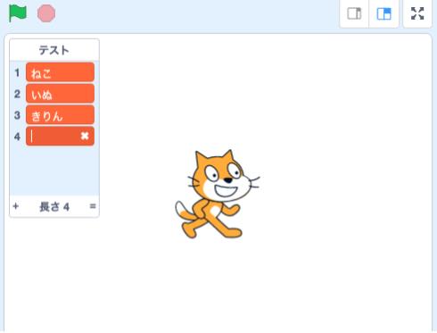 上の画像の左上に動物の名前がいくつか入っていますが、あれがリストになります。